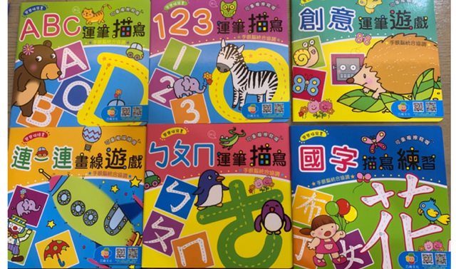 運筆六小本都全新、圖卡配對和小書們都無破損可以正常閱讀,123比較有痕跡白板筆要