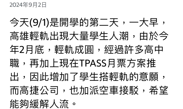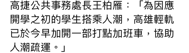 推 aass5566 : 明顯高雄人跟不上輕軌的交通素質 09/16 00:00