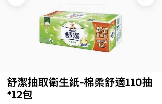 欲換物品:舒潔面紙110抽*12包