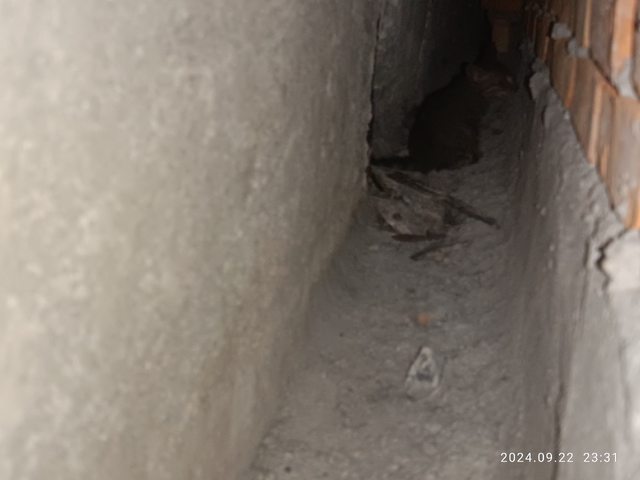 結果他又鑽到大樓牆壁的縫隙裡狂叫