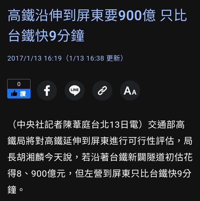 推 fireheart988: 高鐵延伸屏東最大目的是為了環島高鐵路網 你在那邊 09/25 15:57