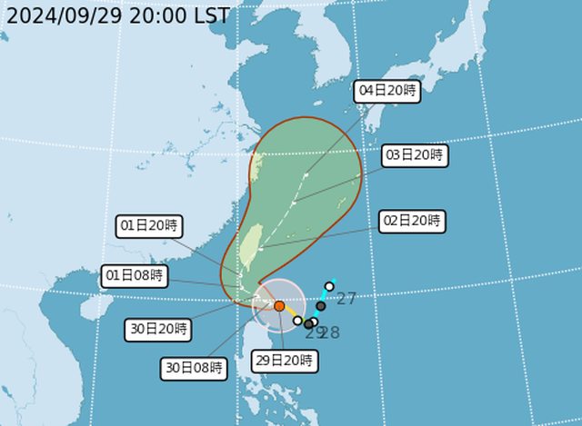 → losetemperat: 限,且登陸點一直在往北修正,目前修正到楠梓左營一 09/30 03:54