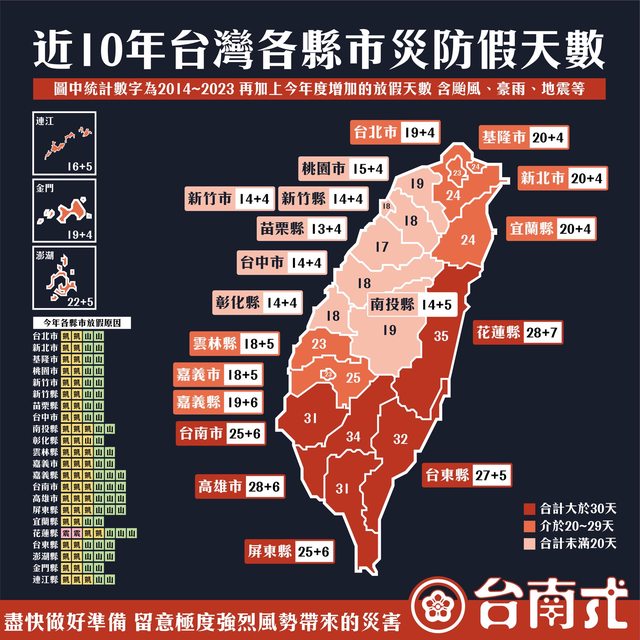推 linginwife : 樓上,你自己看圖,單指颱風假花蓮要扣2,2天是地震 10/03 03:42