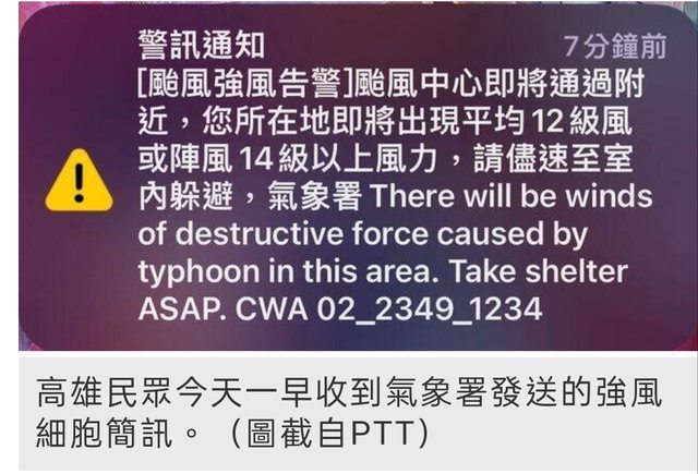 推 shuhong : 又收到一則,颱風中心即將在你所在區域登陸,瑟瑟 10/03 11:14