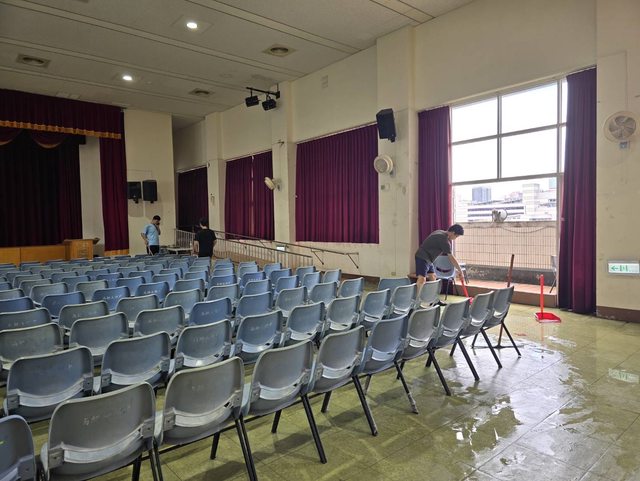 到學校後,到處都是樹葉樹枝甚至碎玻璃
