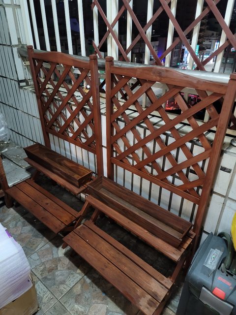 雙層木頭花架及木頭裝飾盆也送你,兩組一起換