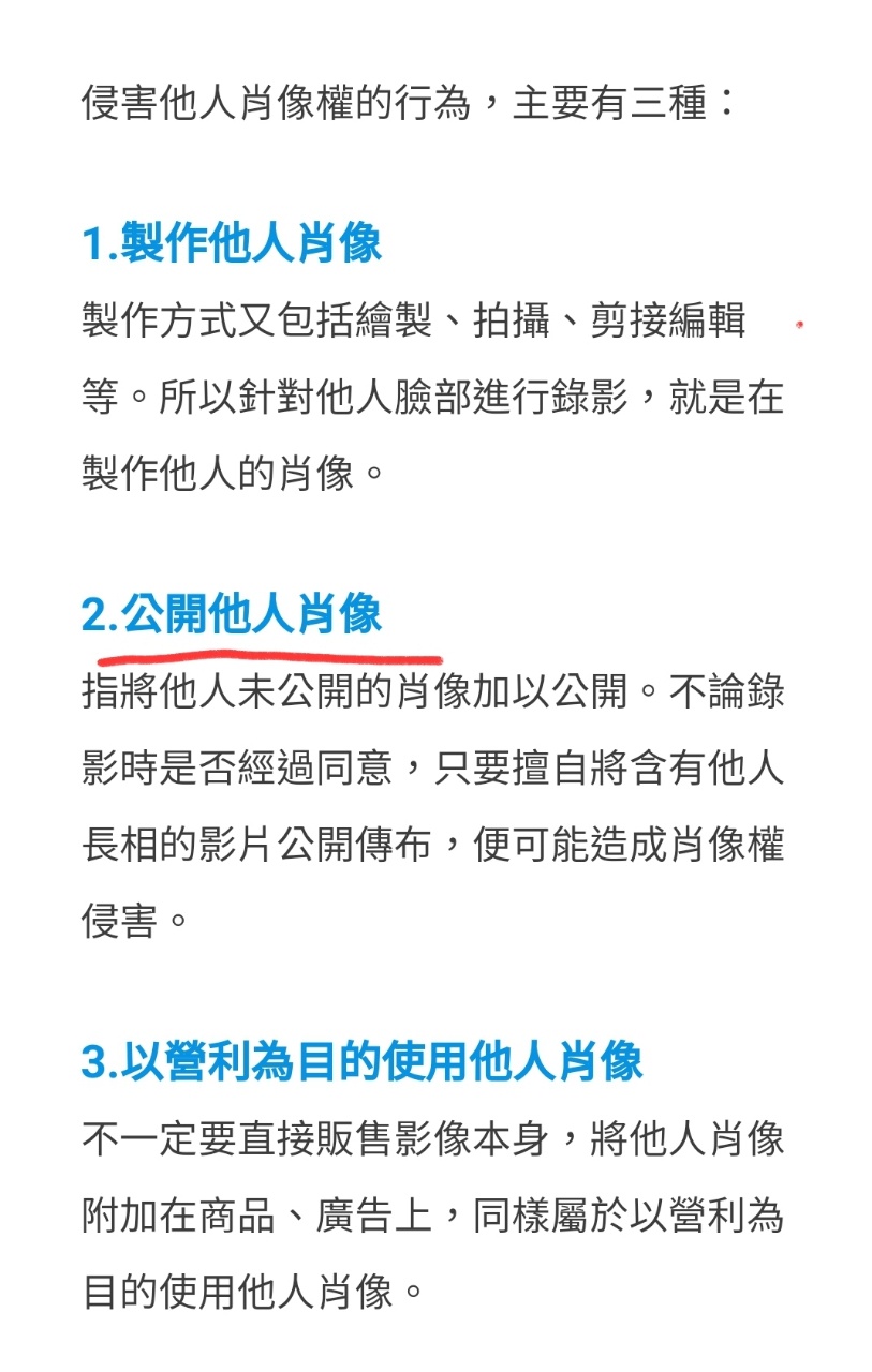 → louiskuo : 公開場合拍攝的照片,不違法,但在底下評論身材,違法 10/31 00:15