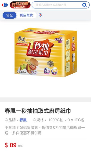 欲換物品:春風一秒抽廚房紙巾3入4包