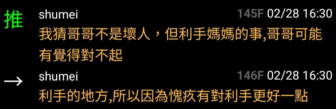 推 newhsun: 該不會利手媽也是哥哥殺的吧 挖靠 這腳色也太強了 03/24 07:59