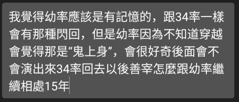 → motivation: 沒什麼交集,但在她34回到20時,又想起善載救她的記 05/17 07:01