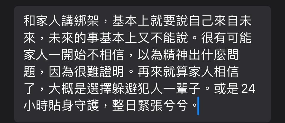 推 vicky00928: 我覺得不和家人講是因為如果命運改變導至家人出事,也 05/17 15:23