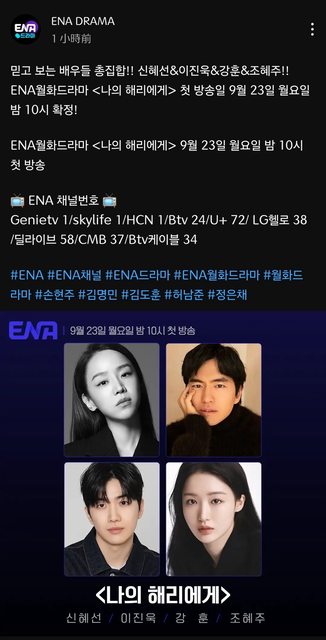 ENA DRAMA YouTube頻道發文 9月23日首播