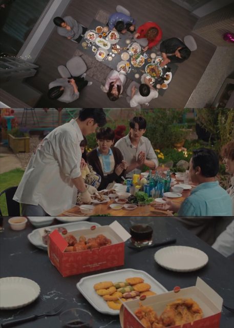 中間兩個是EP.11,原本早餐是雞蛋捲+餃子湯,弘基禱告時吃完狗糧,出現