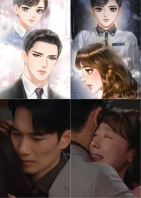 恩河發現持煥=小賢宇歐爸,原著中是她發現後自己傷心哭泣,劇裡則是讓他們一起哭(欸