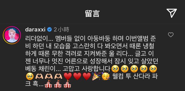.作為那時第一次遇到姐姐的彩麟以及作為2NE1的隊長,我為你感到驕傲。