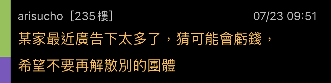 LesBleus: *「有置入業配廣告,所以業配廠商幫忙 223.136.66.146 07/23 14:29