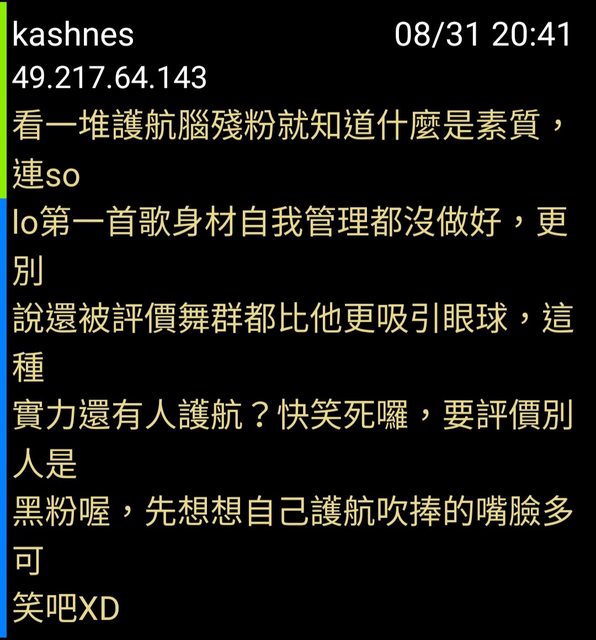 → Tammi: 總算,k的發言真的讓人不舒服 101.12.53.135 09/02 23:35