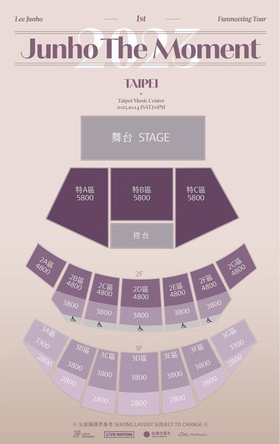 票價:NT$5,800 / 4,800 / 3,800 / 3,300 / 2,800 (全場皆為劃位座席,請依票面座位