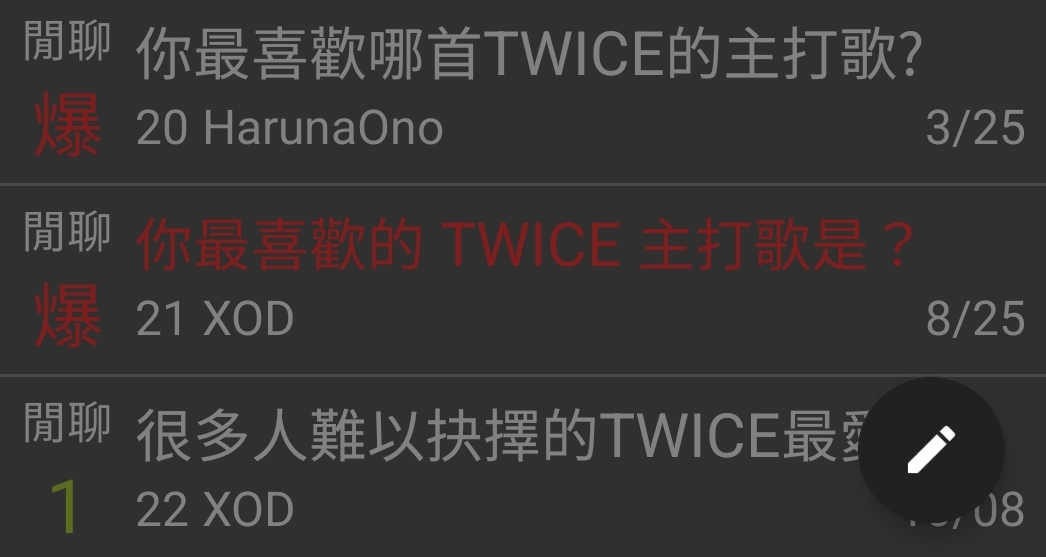 → tarimasu: 喜歡TWICE但短時間內發重複話題文不會令 223.138.87.12 10/08 22:43