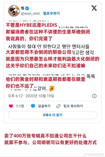 YdNic1412: 抱歉離題。HYBE這樣處理真的很差勁123.110.148.169 10/21 12:07