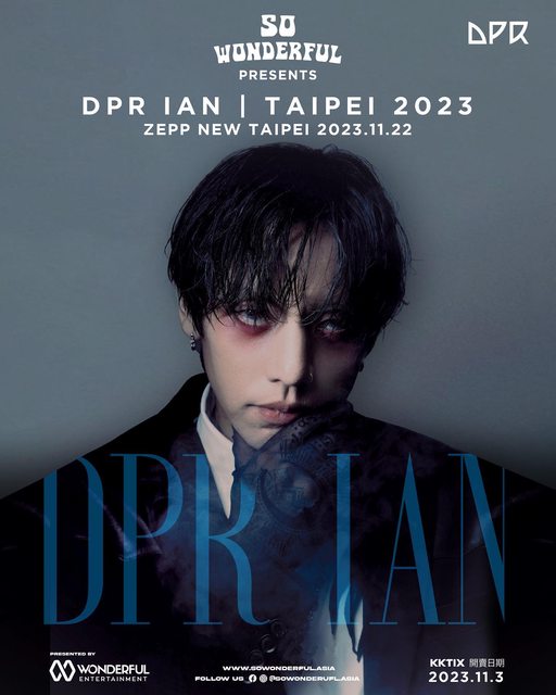 Presented by So Wonderful:IT'S OFFICIAL - DPR IAN 即將在 11/22 帶著全新作品回 到台北舉辦 SOLO 個人演唱會! 繼去年 11 月由我們 Wonderful Ent. Asia 所舉辦的 DPR 世界巡迴演唱會台灣站後,不 到一年內 DPR 的當家歌手 IAN 也決定要在 11/22 再次回到新北的 Zepp New Taipei 為 大家帶來他新的音樂作品以及一場精彩的 SOLO 演唱會。 繼 DPR 團隊於去年來台演出後,這次 DPR IAN 絕對會帶著全新的音樂和能量跟所有的粉 絲們一起在這場表演中將能量釋放。 ___________ 【 DPR IAN 台北演唱會 2023】Presented by So Wonderful *演出日期:2023/11/22(三)20:00 *售票系統:KKTIX *售票連結:2023/11/03 20:00 正式開賣 *演出地點:Zepp New Taipei *票價:     一樓全區 $4200(依票卷序號進場)     二樓座位 $4200     二樓站位 $2800(依票卷序號進場) cr: Wonderful Entertainment Asia / Instagram -- ※ 發信站: 批踢踢實業坊(www.ptt-site.org.tw), 來自: 61.219.184.68 (臺灣) ※ 文章網址: https://www.ptt-site.org.tw/KoreaStar/M.1698655924.A.089