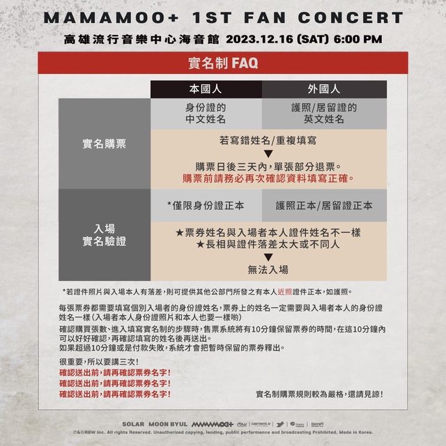 3. 本演出採【全區實名制】請透過官方指定【拓元售票系統】購票