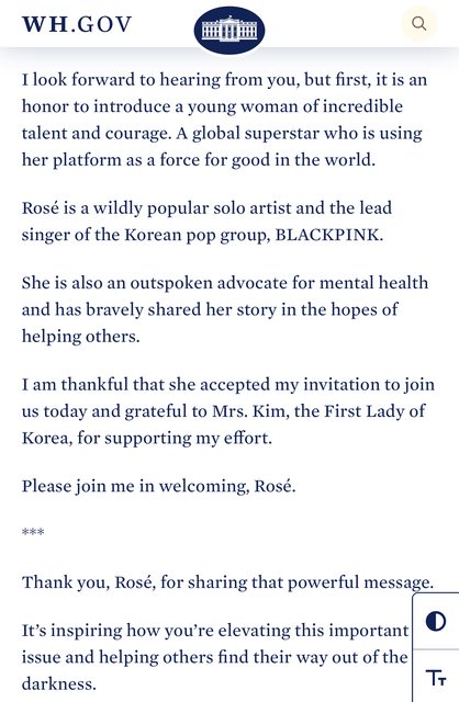 白宮圖書館也將Jill Biden這段對ROSÉ的讚美,