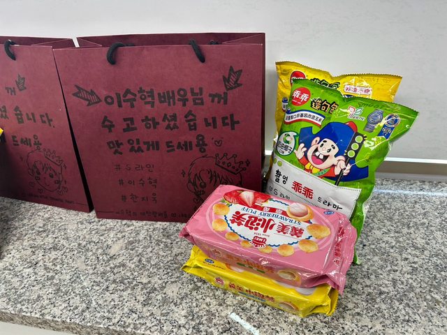 十分感謝臺灣的內援小團隊,快速的準備臺灣零食跟包裝袋,還有超級用心的小卡,寄給 在韓國的我,這次才有台味滿滿的零食分享給劇組人員跟王子殿下。以及 @giftifan 解 決了我無法海外收款的困擾...沒有paypal的救星!!!加上咖啡車廠商 @polis.coffeet ruck 即使在前兩天經紀公司還沒有給我們人數,還願意接單,感動不已 https://i.imgur.com/K1mZTgM.jpg