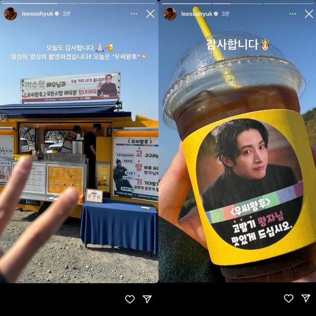 先恭賀洙赫王子殿下今年兩部戲殺青 已經期待明年播出的日子了 然後我們還在敲碗等說好的照片呢?哈哈哈哈 李先生今年是想把自己逼瘋,竟然一次尬兩部戲還幾乎同時開拍同時結束,拍戲中間還要 飛出國參加時尚活動,我用看的都覺得這個行程好累~ 231025 李洙赫第一台咖啡車應援「于氏皇后」順利出車! 在歷經兩個月的等待終於輪到我們臺灣粉絲出車 我們本來希望中秋節可以出車,準備很多鳳梨酥、豆沙酥這種想要給哥來個台式中秋節套 餐結果韓國瘋狂下雨新戲暫緩、哥又忙於海外的工作一直沒進劇組,一度覺得我們會被順 延再順延,甚至有可能要被排到下一步戲 還好10月好事發生了! 看到YG的回信,我們可以出車啦! 這次YG給了一個禮拜的應援準備時間 我真的感動到掉淚…..時間好充裕嗚嗚 https://i.imgur.com/V3e8Mlb.jpg