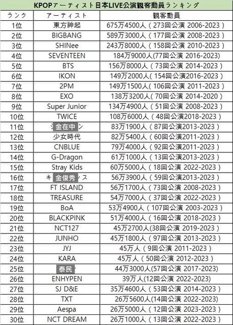 K-POP藝人在日本演出的觀眾動員數排名 https://i.imgur.com/YyhbUtp.jpg