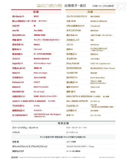 推 otaku32286: 紅白要唱什麼歌曲一直都是NHK指定的 27.53.233.222 12/22 14:54