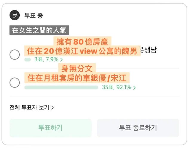 13. 以現實的角度來看好像是2更有人氣,我看過雖然有錢卻沒辦法談戀愛的人,但沒看過長得帥卻沒有對象的人