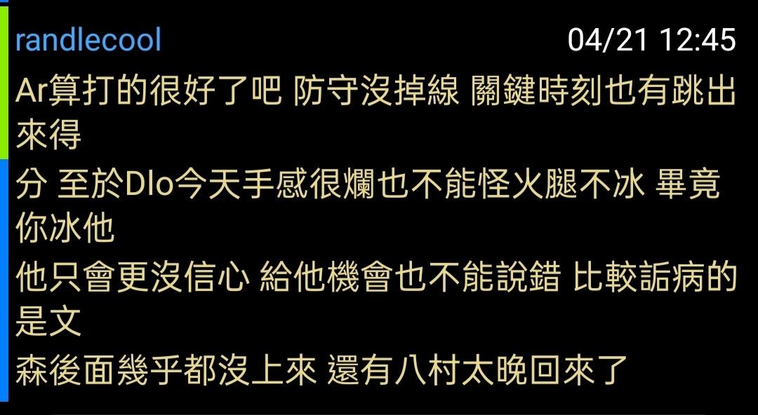 推 bm1041644: 收官要咬住比分才能放文森丁丁 不然就是Dlo AR追分 04/21 11:58