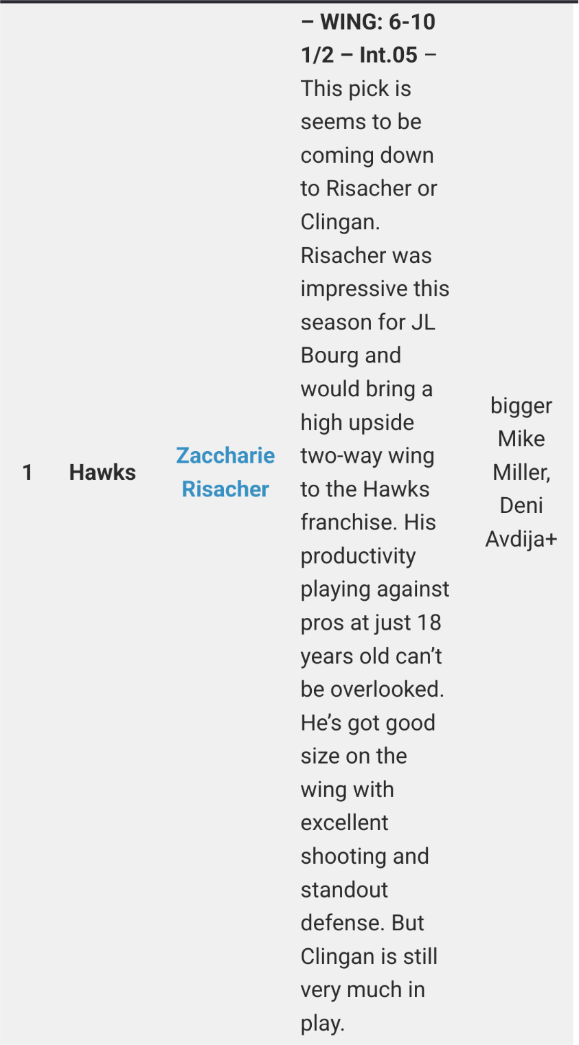 推 LBJKO: 上一季有別的地方有分享Sam Vecenie選秀大禮包可看很爽XD 06/25 14:17