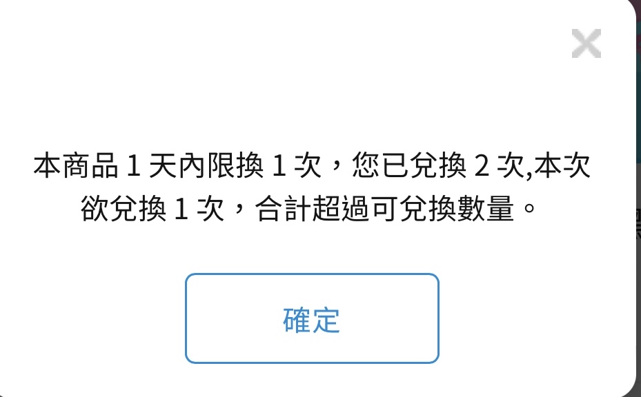 推 raulyuyu: 錯誤訊息寫:一天只能兌換一次,不是兌 101.9.128.43 09/06 11:02
