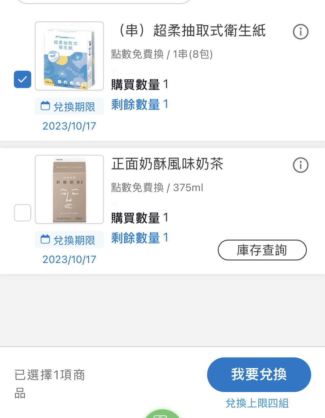 推 m13579: 衛生紙沒興趣 兩款飲料都換到收工 1.200.2.70 09/06 10:03