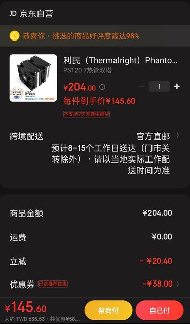 台灣會場內有20+8,本文有10運費券,一共減38運費