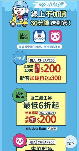 標題[情報] 全聯小時達滿1000折200