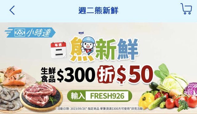 活動名稱:小時達 週二熊新鮮