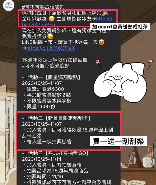 推 abeabeabe: 剛加入,只收到4張券,沒有免費紅茶券 36.232.151.94 10/26 02:50