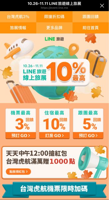 標題[情報] line旅遊線上旅展訂虎航3%無上限