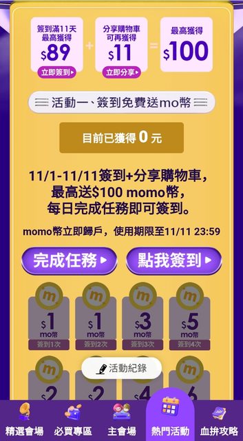 → newlife5566: 感謝樓上提醒整點搶的mo幣要當天用 114.44.33.50 11/01 10:35