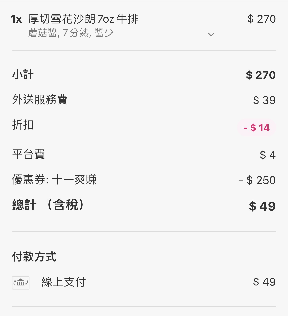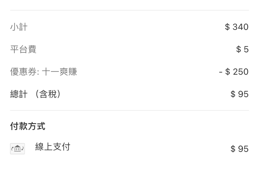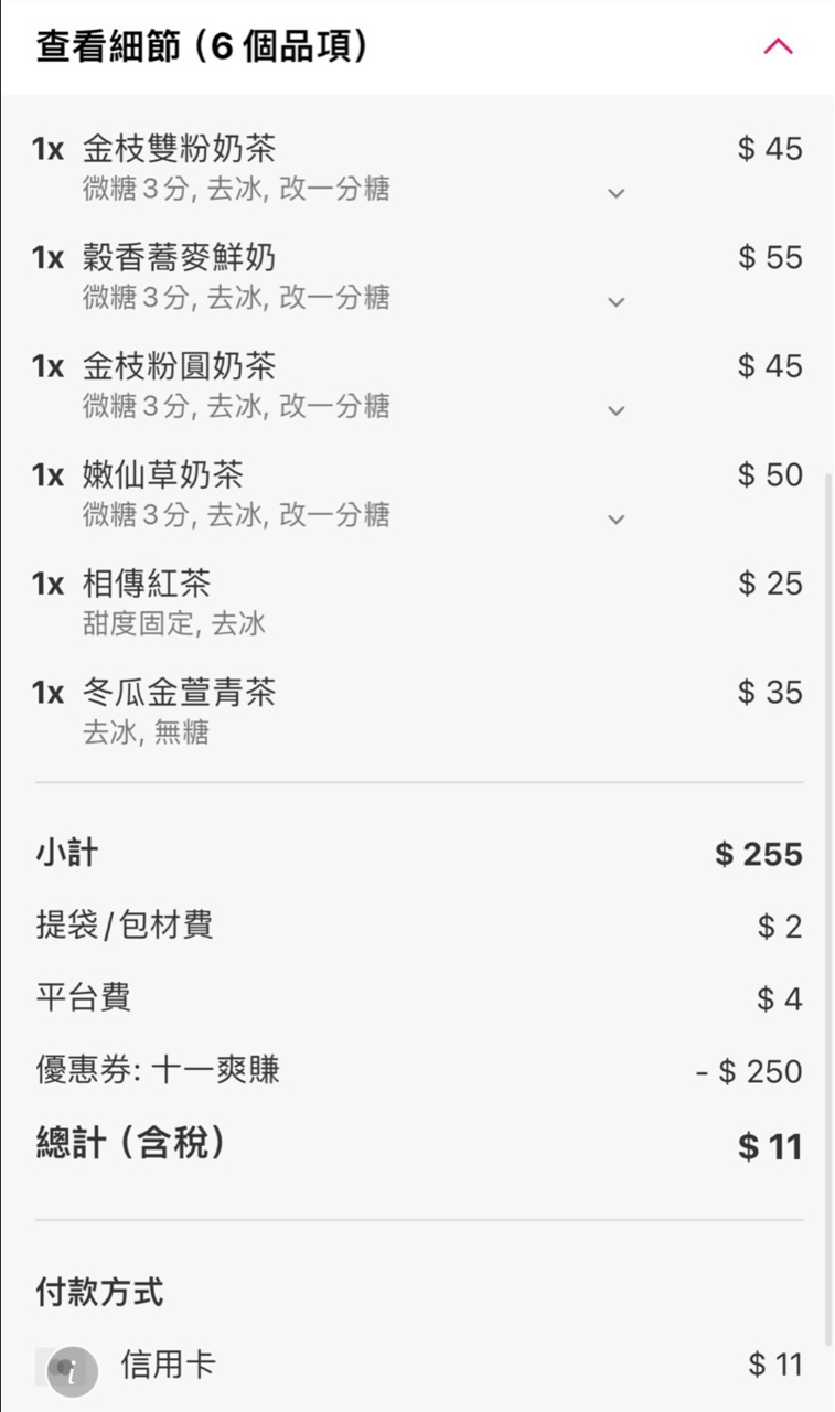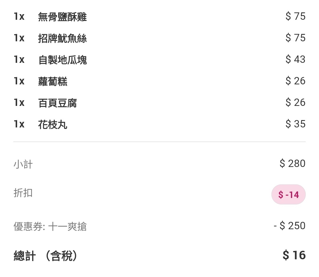 → joker4946: 我折到0元就沒收平台費,訂單還在準備 118.232.24.154 11/04 11:06