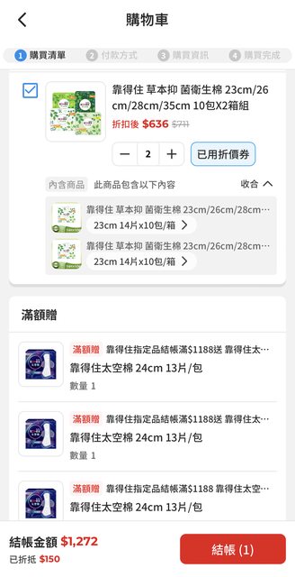 → becky1997: 剛買完,謝謝分享。2入組夜用比4入組 1.200.160.174 11/05 21:08