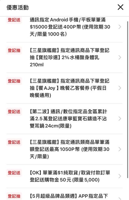 → smithy7439: 推 剛幫我媽註冊拿了50P然後買了一組 111.83.5.33 05/13 23:03
