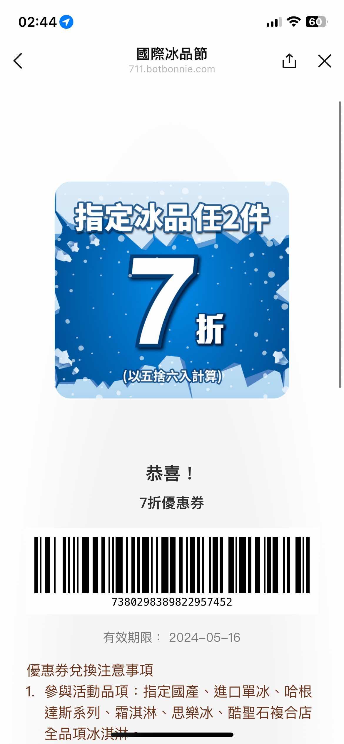 推 cynthia0804: 抽到五折!要拿去買哈根達斯冰棒 118.168.39.70 05/16 08:09
