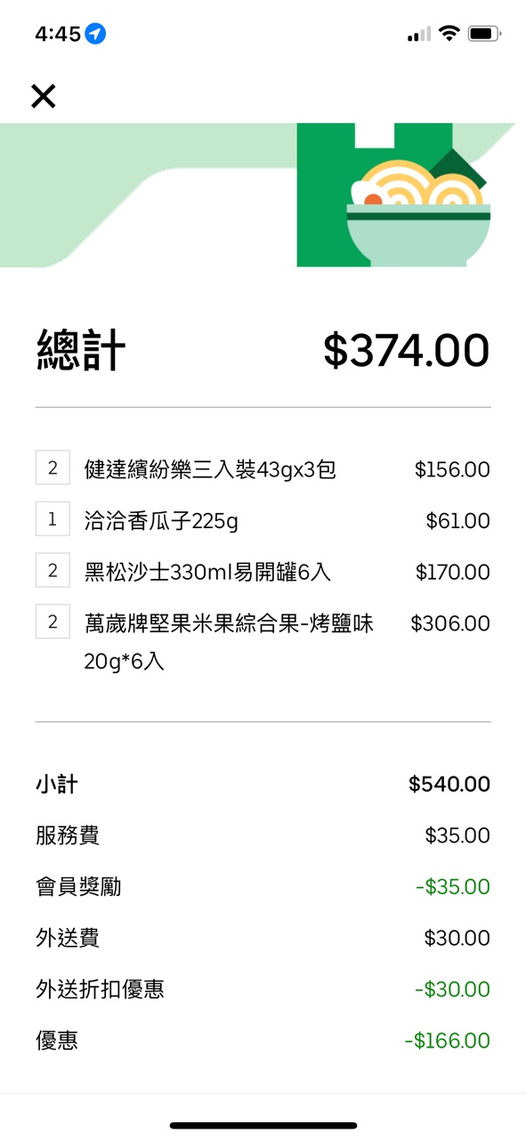 doreen2356: 明細變367元,外送員送來後line通知 42.75.7.200 05/24 22:48