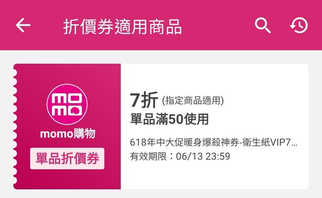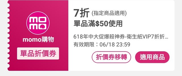 標題Re: 情報 momo 衛生紙7折券
