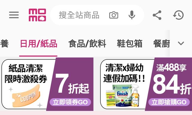 : 往下拉看到“紙品清潔限時激殺券7折起”點進去領券