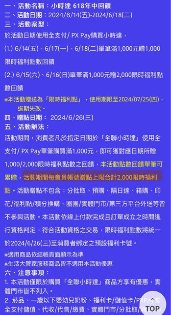 → hooo: 沒有,上限2000點,全聯應該不會讓優惠疊加 1.160.25.224 06/15 22:22